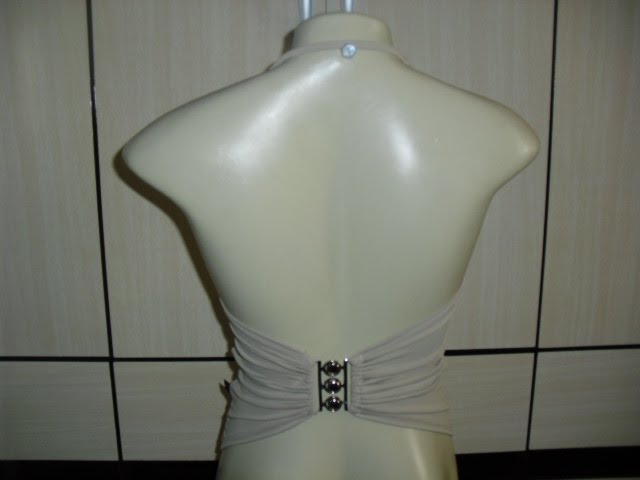 Preta, tecido super resistente, usada uma única vez, para ser usada c/ top ou sutiã por baixo.